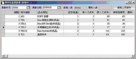 | •人工及製造費用提供以數量、工時或自設標準進行細項分攤。 |